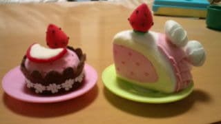 もちろん、果物はマジックテープ付きで、それをくっつけた布製のケーキです。